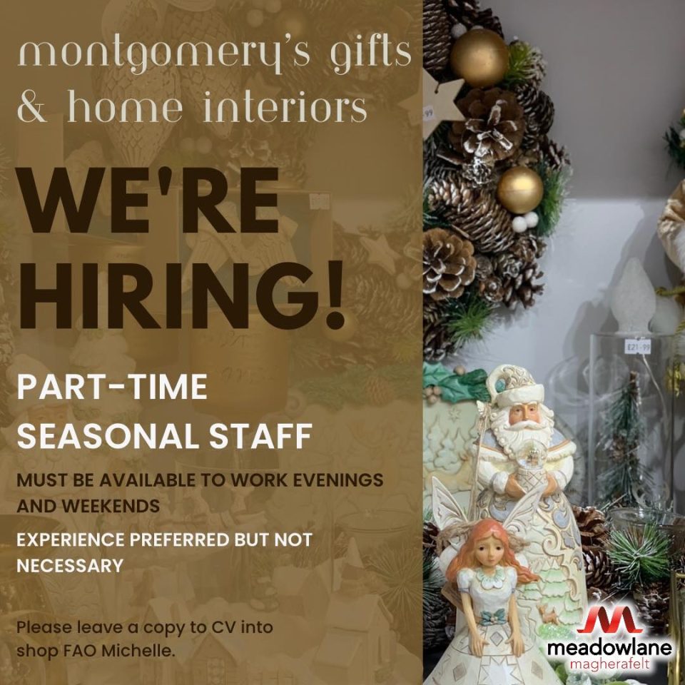 Montgomery’s Gifts & Home Interiors are looking for part-time, seasonal staff to join their Christmas team.